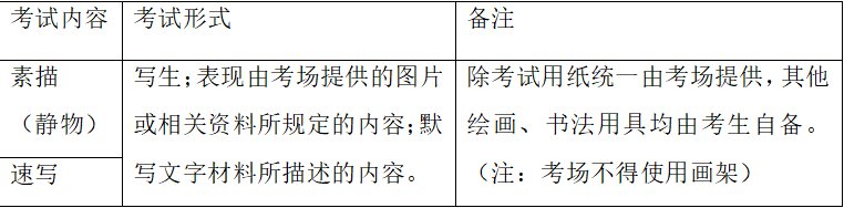 (2)速写:铅笔、炭笔、钢笔均可(考生自带)。