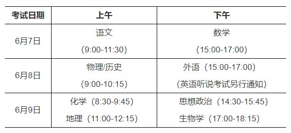 注:全国统一高考科目考试时间安排以教育部公布的为准,如有调整,我省选择性考试科目的考试安排将做相应调整。