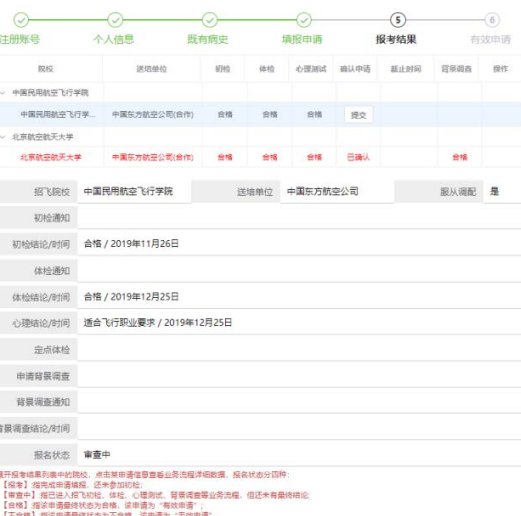 (五) 确认有效招飞申请当考生所填报招飞申请