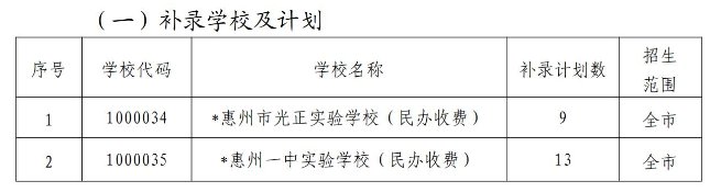 2021惠州中考补录学校以及计划