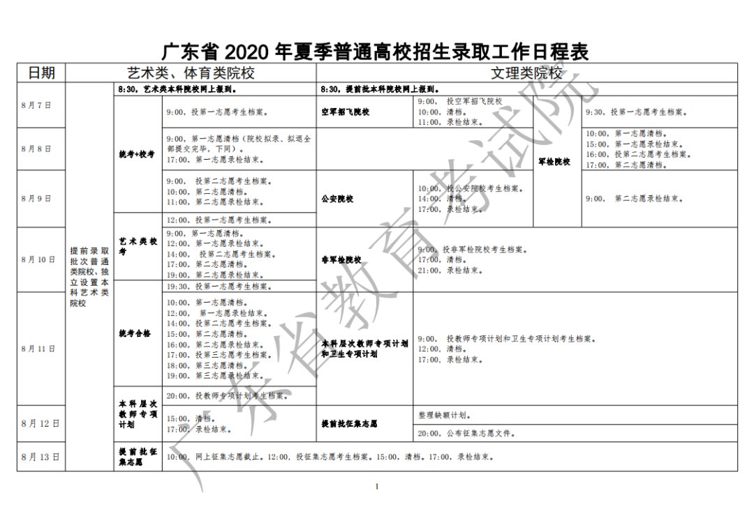 2020广东高校招生录取工作日程表(2020广东高考录取日程)
