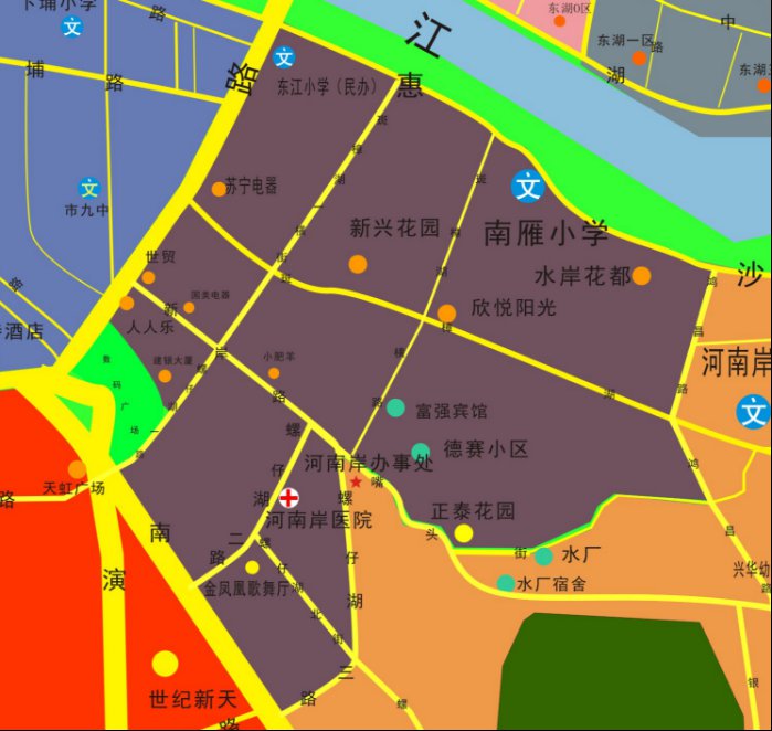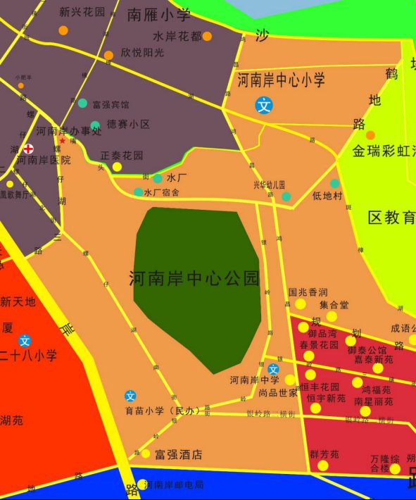 河南岸中心小学:鹤地路——斑樟湖路——规划路——鸿昌路——白泥路——南岸路——螺仔湖三路——接嘴头街,经水厂至河南岸农贸市场接流江村,以上路线所包围的区域。