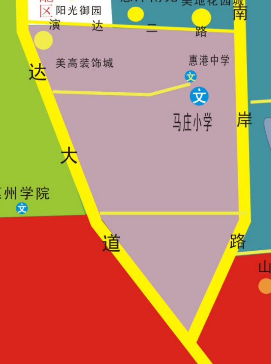 马庄小学:自南岸路的金山龙庭入口处起往北,经南岸路接演达二路接演达大道,以上路线包围的区域。