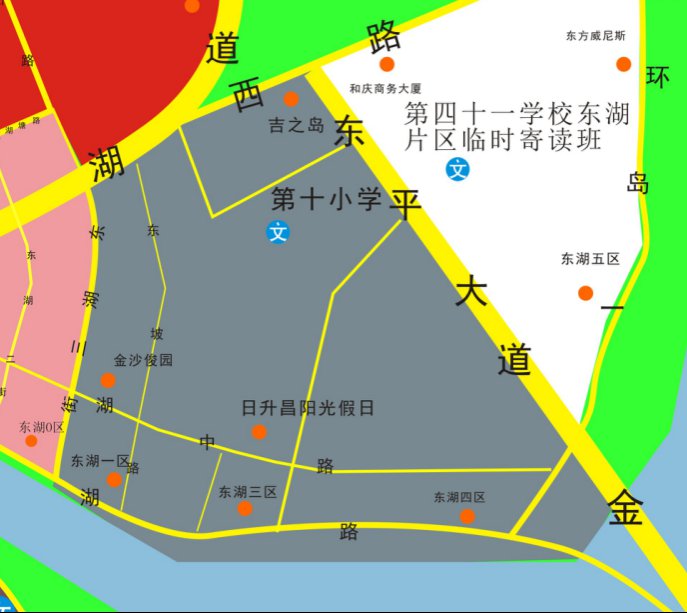 第十小学:东湖西路——东湖三街——东湖路——东平大道,以上路线所包围的区域。