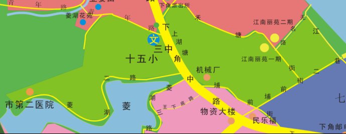下角小学:祝屋四巷跨下角东路,接埔前街跨下角中路,接菱湖三路,再接下角南路,以上路线所包围的区域和丰山一带居住区。