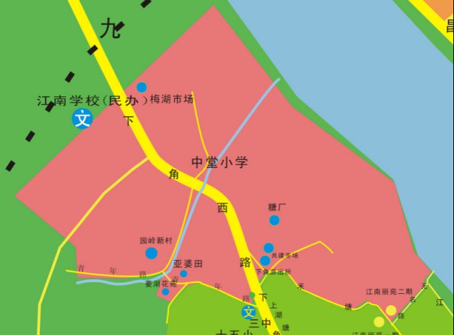 中堂小学:青年路经下角中路,接禾塘街接无名路,直至东江边,以上路线所包围的区域。