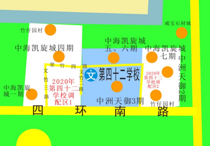 第四十二学校调配区2:中海凯旋城七期、中洲天御二期、竹仔园村(近四环路)。2020年,该区域适龄儿童临时调配到第四十二学校就读。