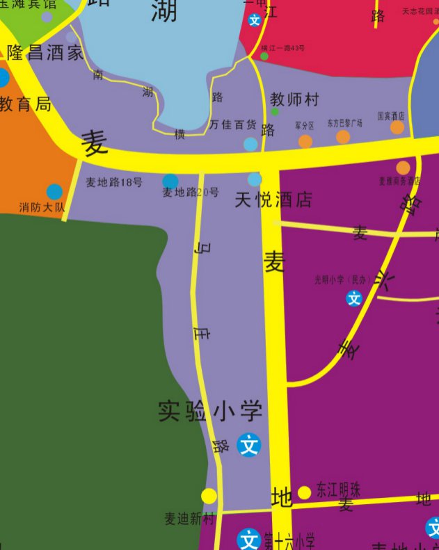 实验小学:麦地路公安消防局以东经麦地路接麦地南路接麦地东路,以上路线与山地之间所包围的区域。自原隆昌酒家起,经南湖路接麦地路至国宾酒店以北,标注横江一路43号以上门牌(不含43号)的居住楼宇和有“麦地门牌号”的居住楼宇 。
