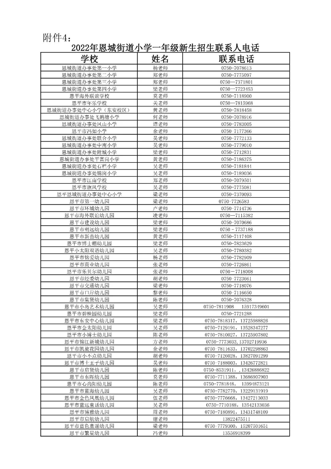 4.恩城各小学幼儿园招生负责人及联系电话