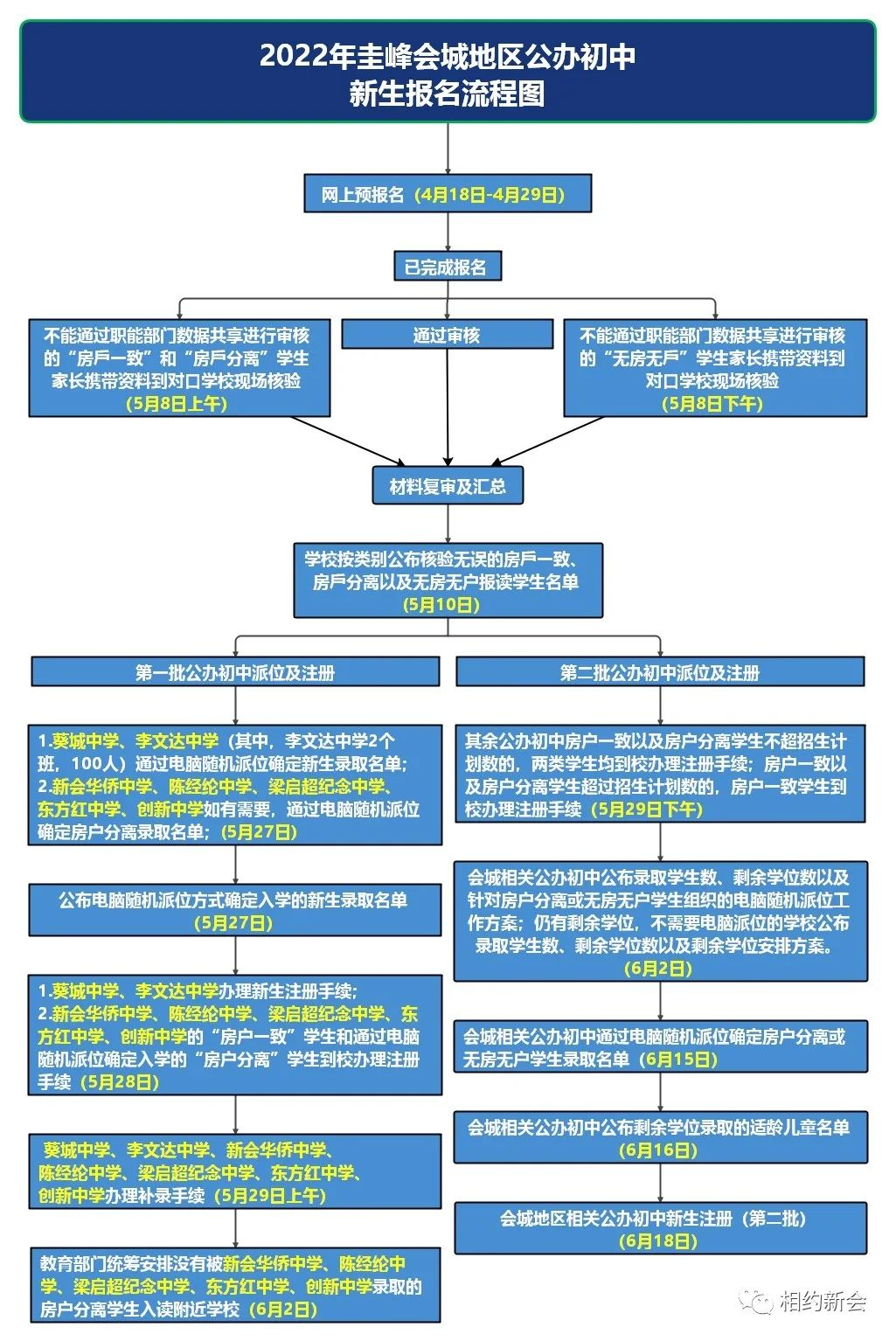 2022年圭峰会城地区公办初中招生工作分四个阶段进行。