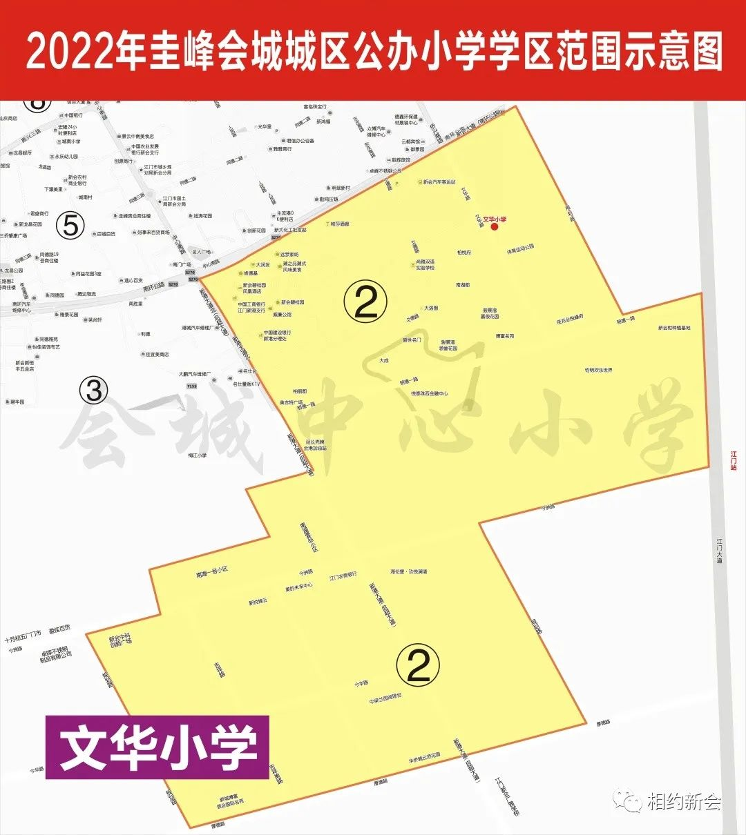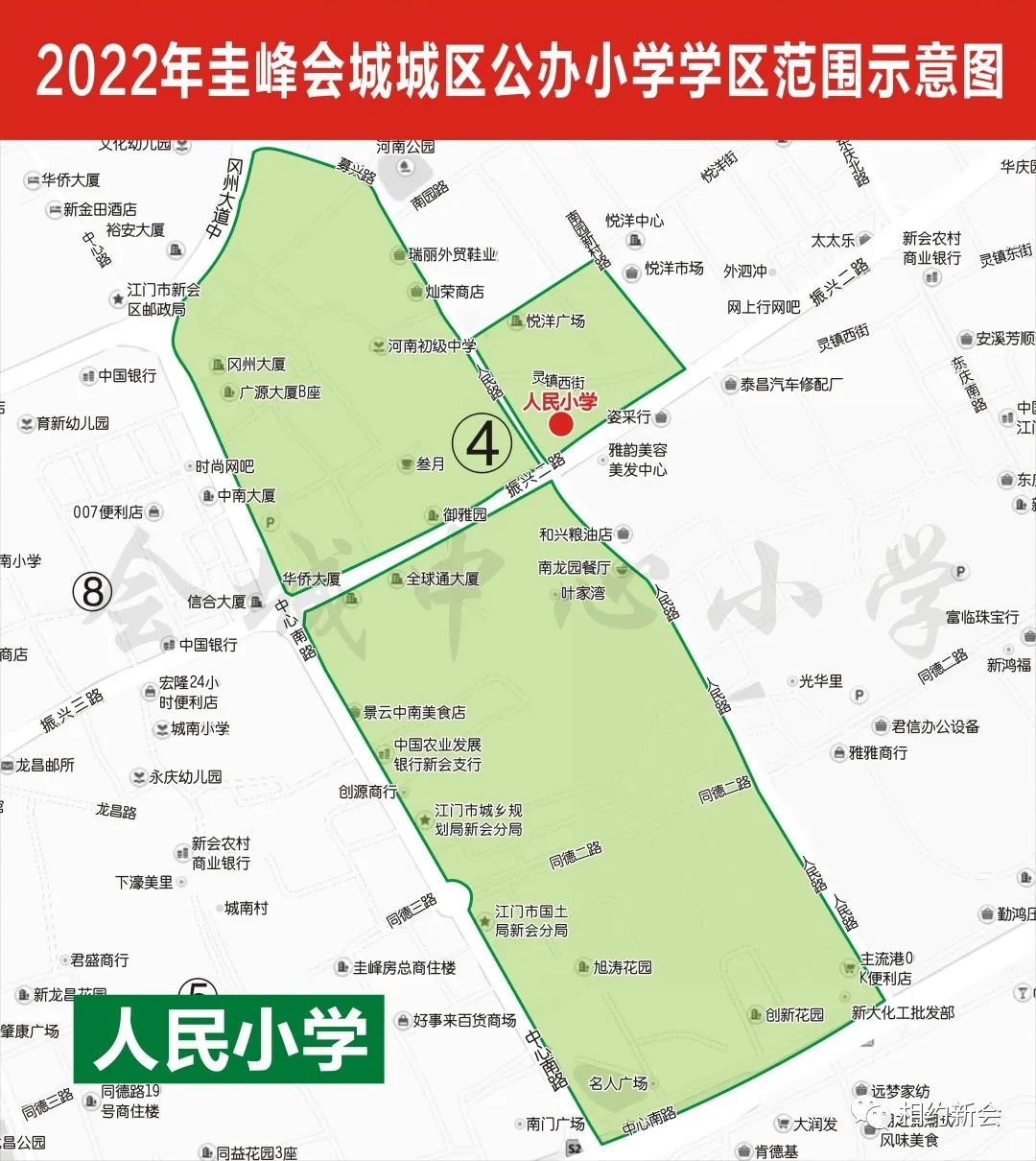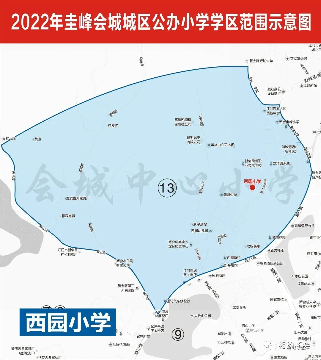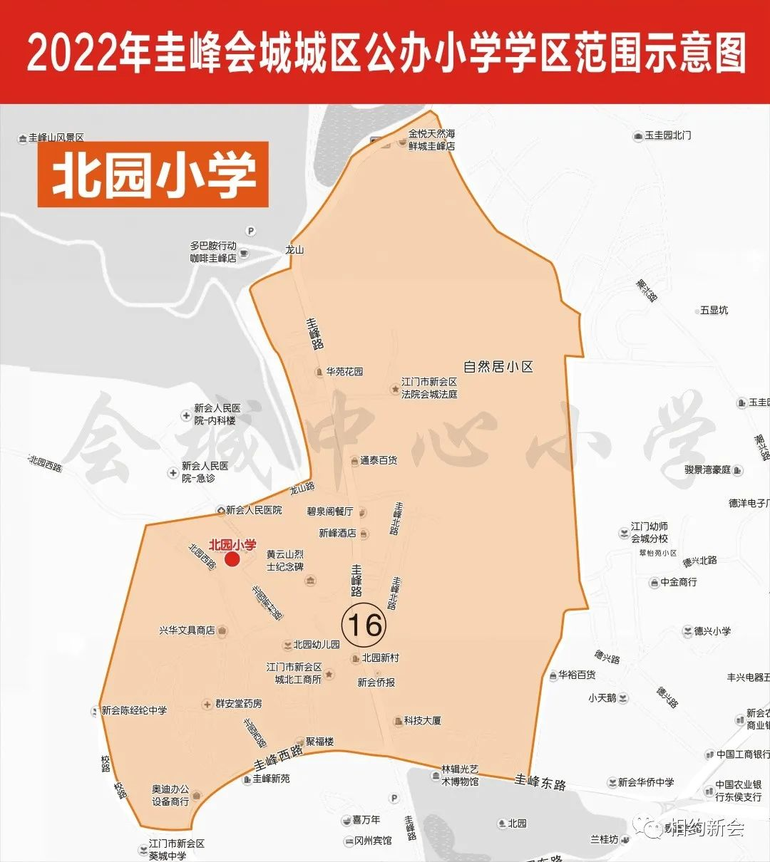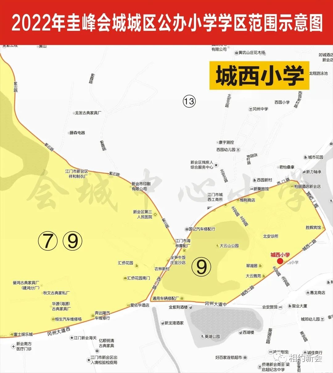 2022年新会圭峰会城小学学区划分图 圭峰会城地区小学