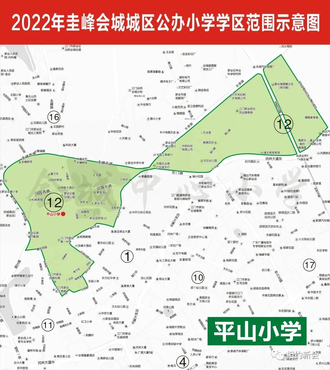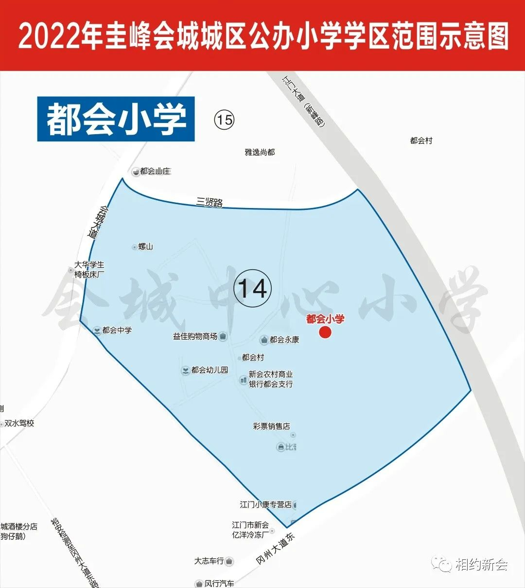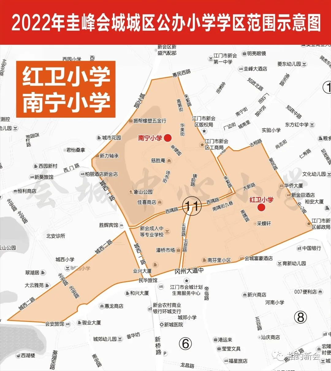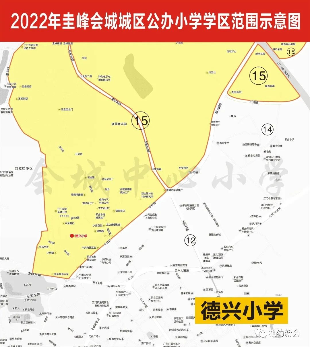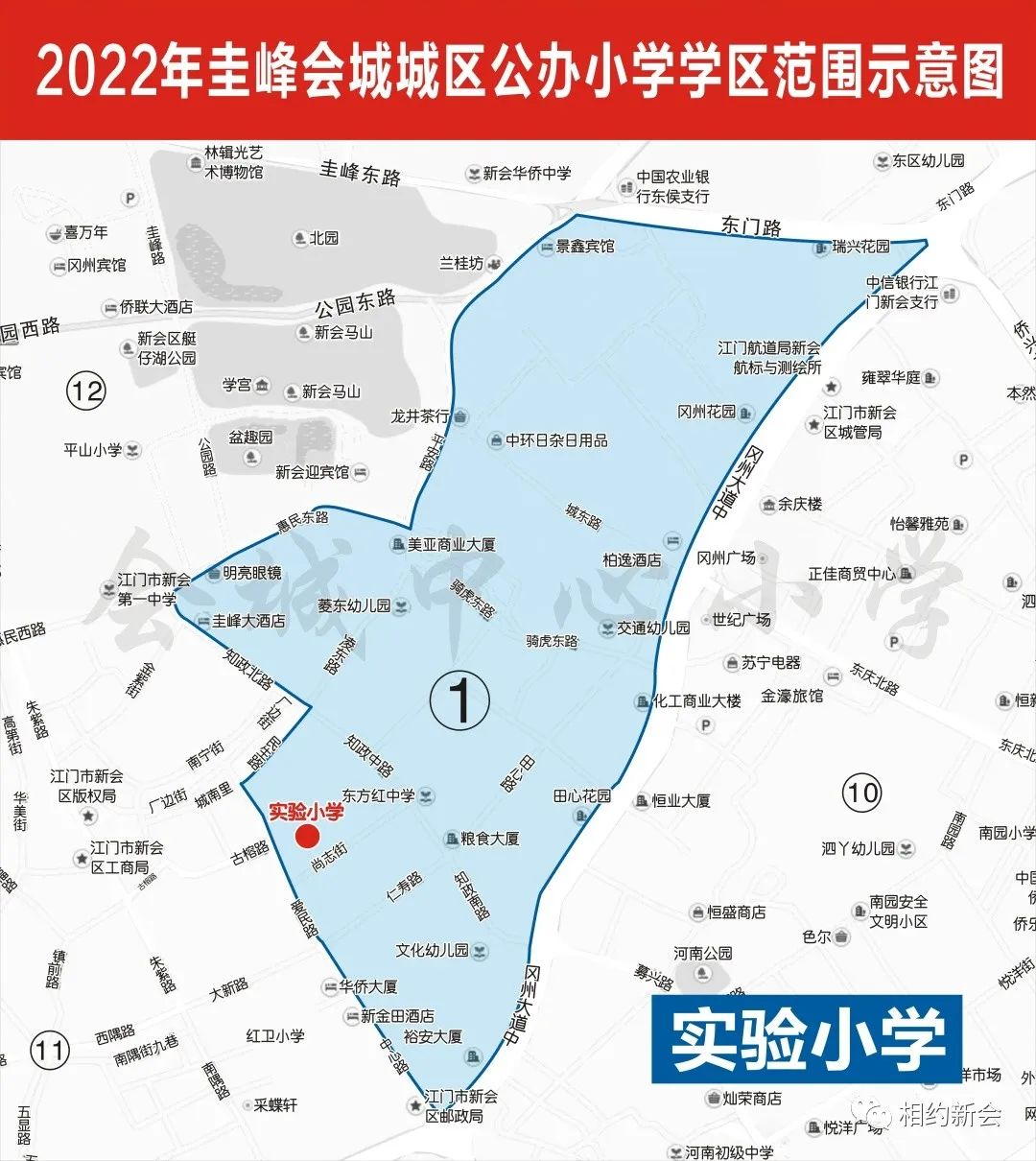 2022年新会圭峰会城小学学区划分图 圭峰会城地区小学
