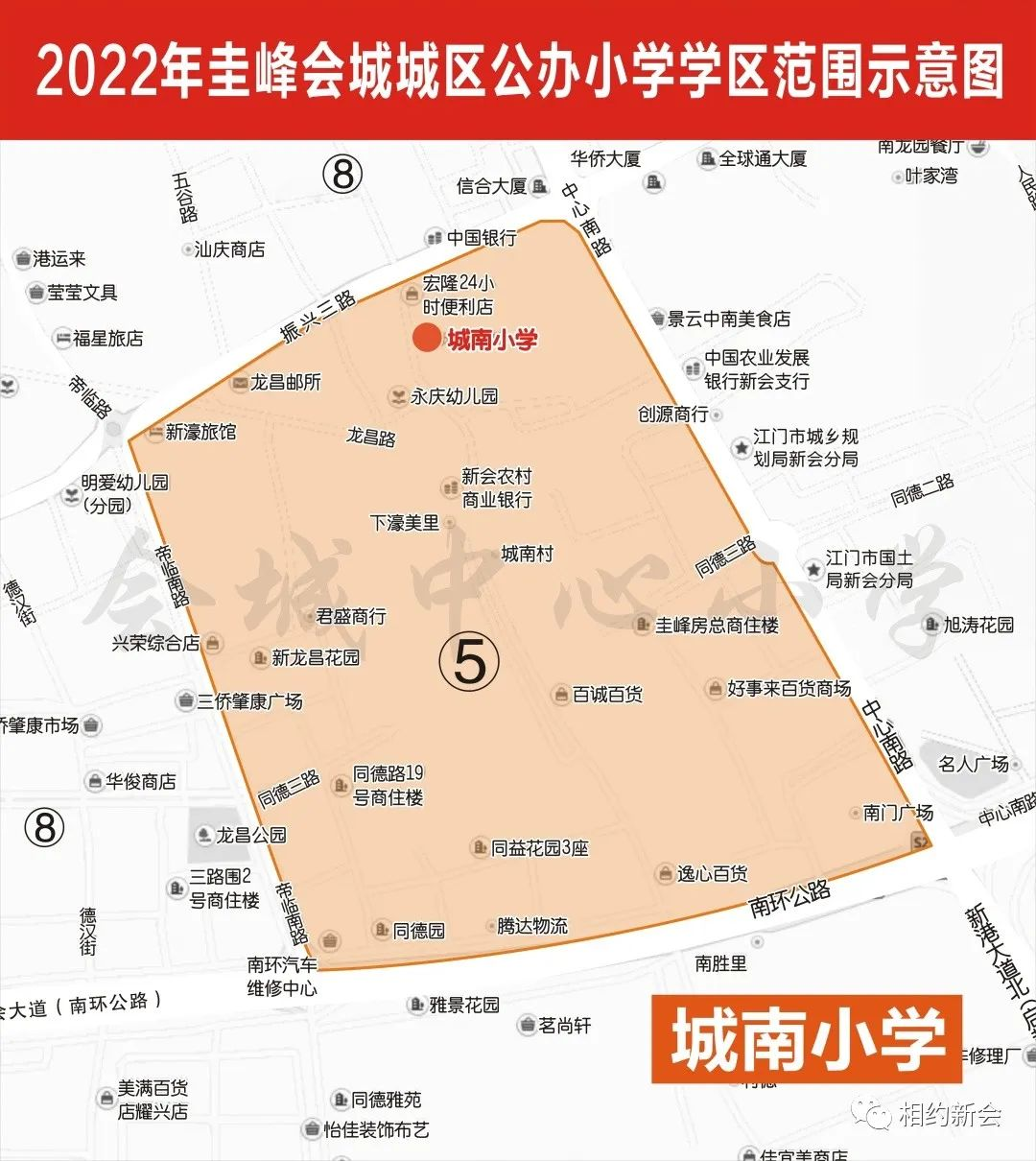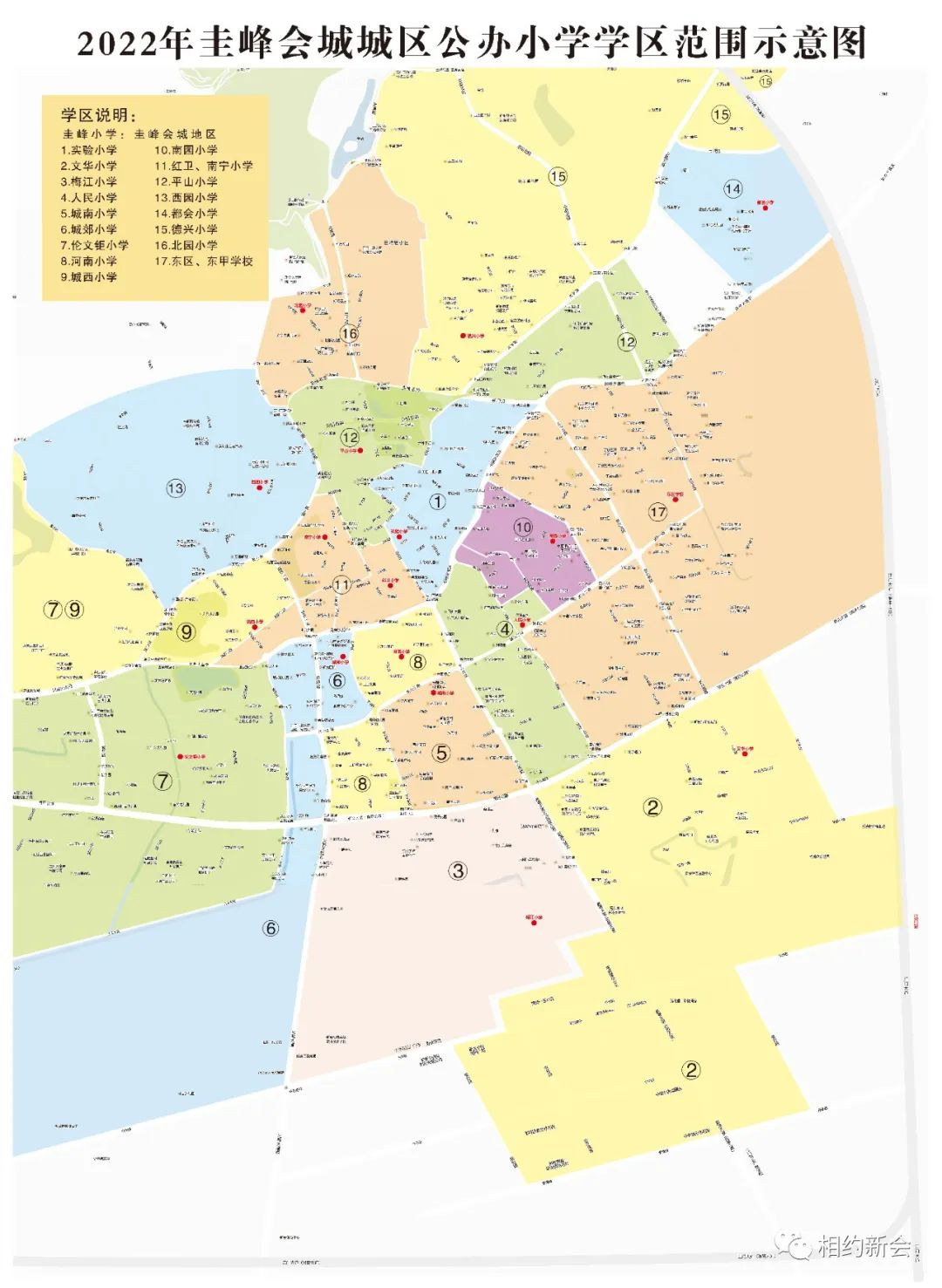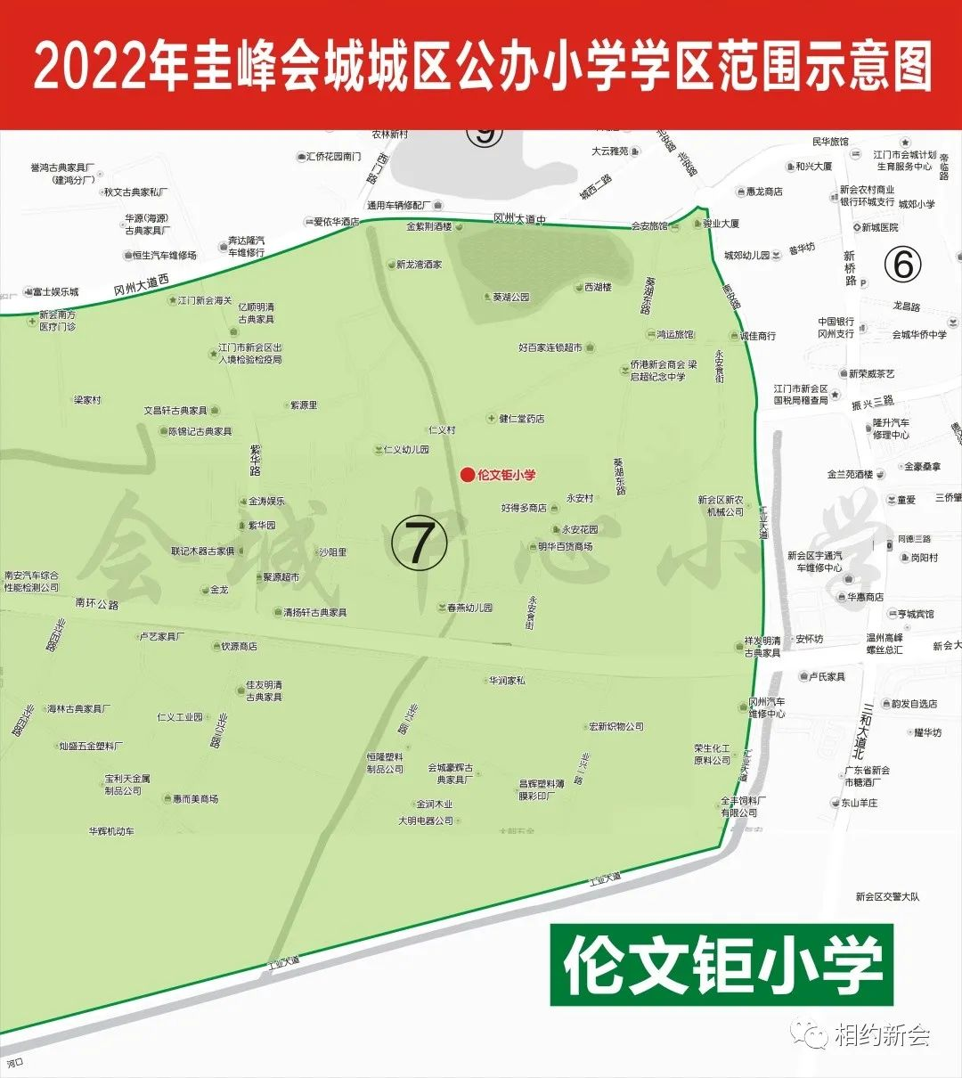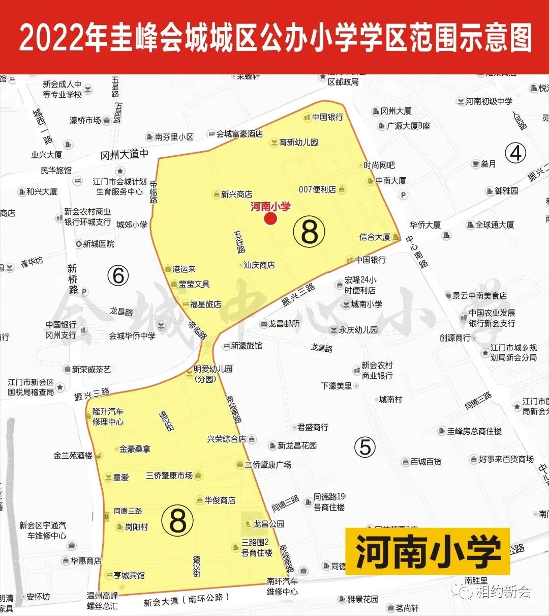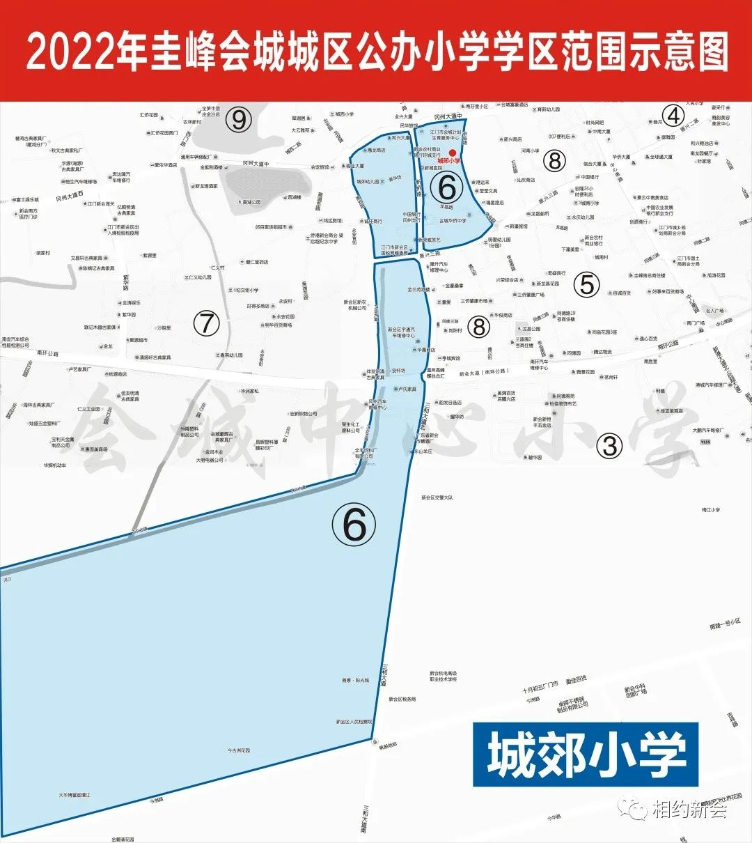 2022年新会圭峰会城小学学区划分图 圭峰会城地区小学