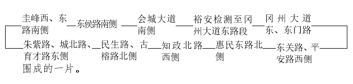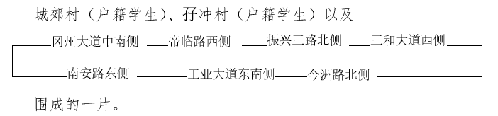 注:冈州大道西北侧、西门路西侧、紫云路西南侧区域的“房户一致”和“房户分离”学生可选报伦文钜小学或城西小学。