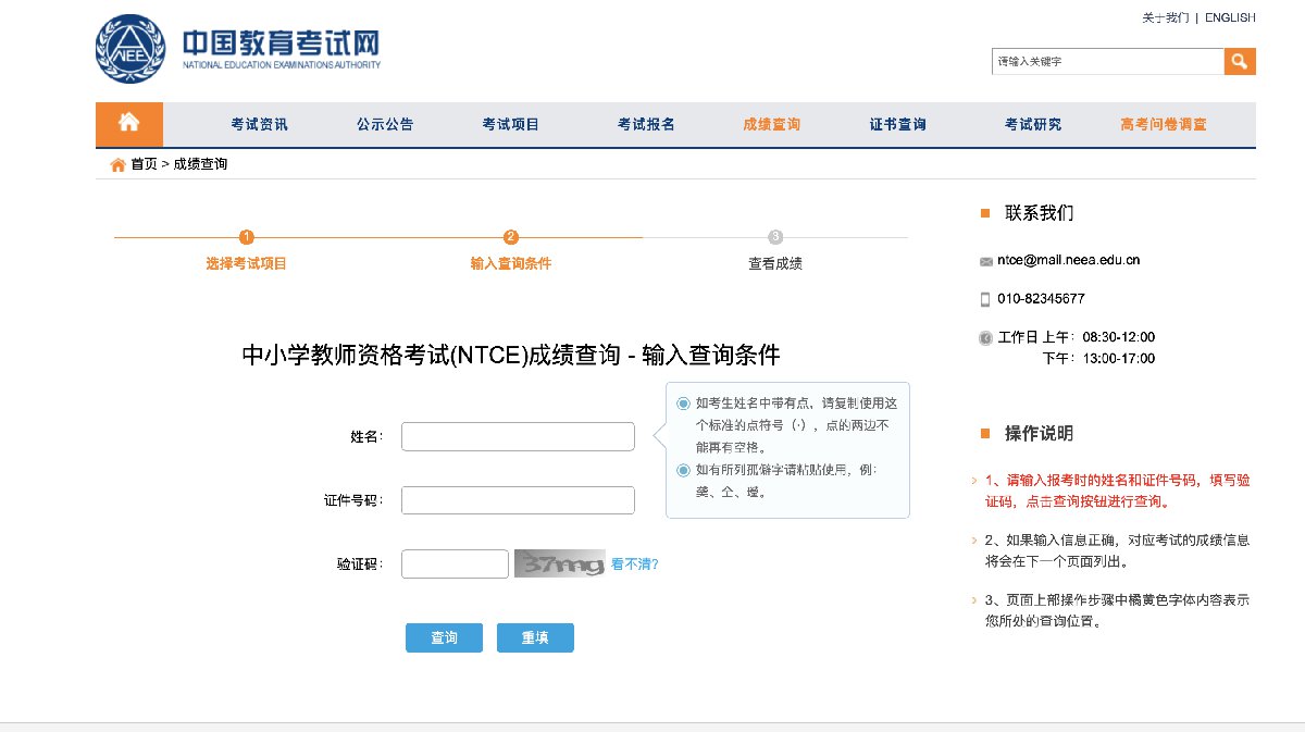 ➤查询平台:中小学教师资格考试网(网址:http://ntce.neea.edu.cn