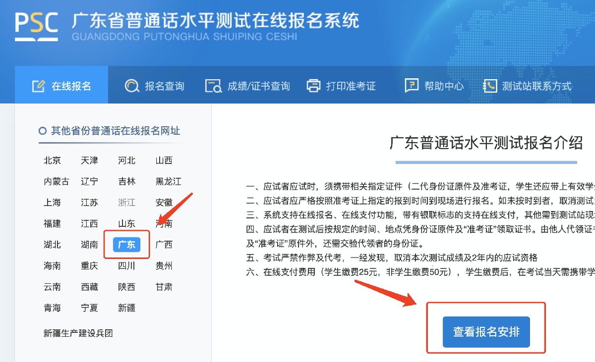 (1)登录广东省普通话水平测试在线报名系统,网址:http://gdbm.cltt.org/pscweb/