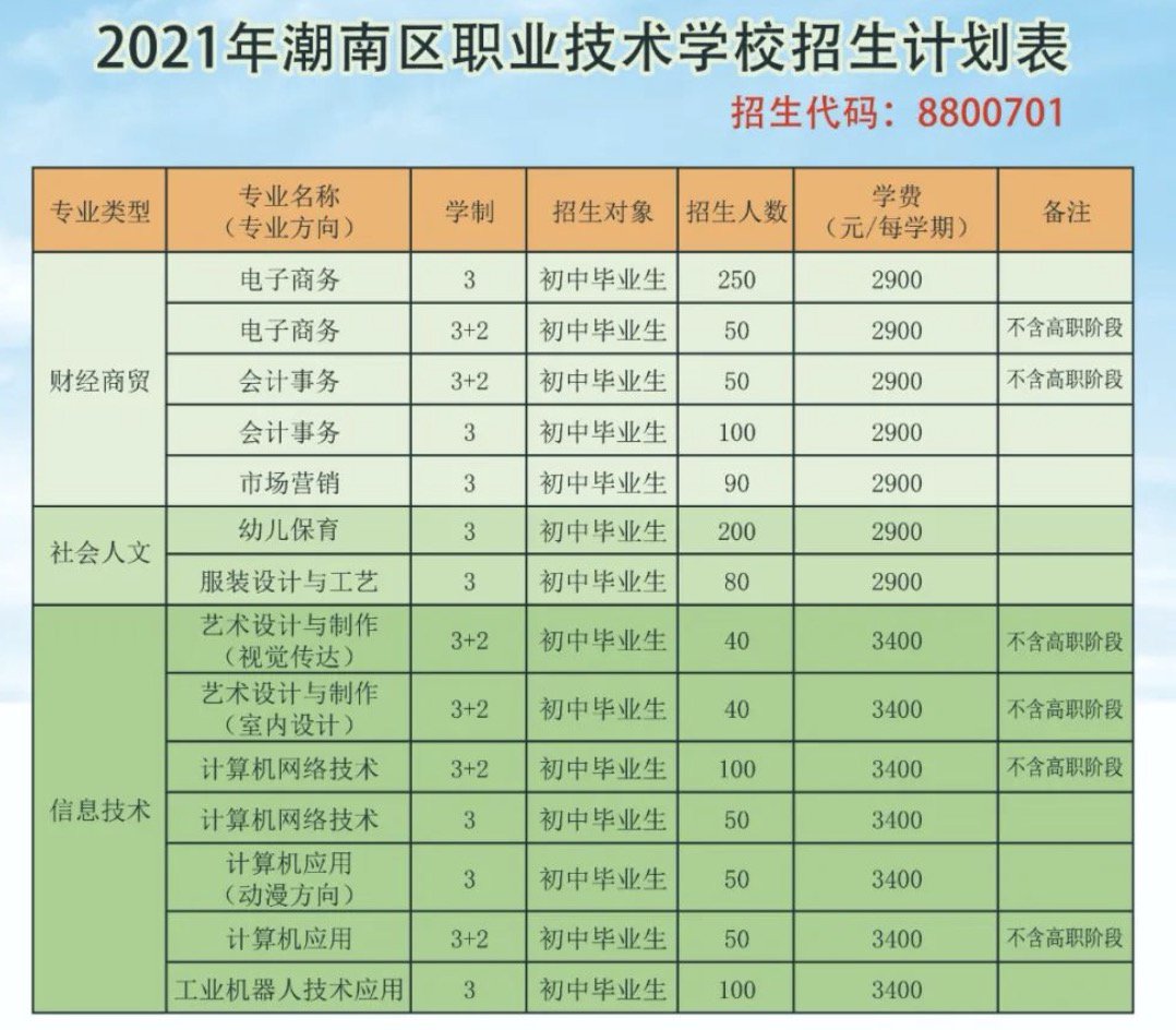2021汕头市潮南区职业技术学校招生计划