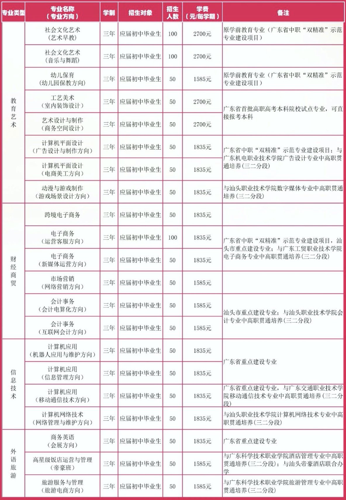 (2)计算机应用、计算机网络技术、计算机平面设计、动漫与游戏制作、电子商务、跨境电子商务、商务英语等专业每学期1835元;