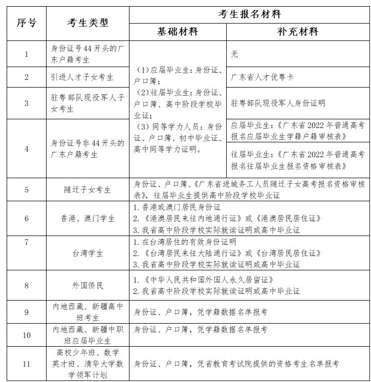 2022广东高考考试报名材料一览表(2022广东高考考试报名材料一览表格)