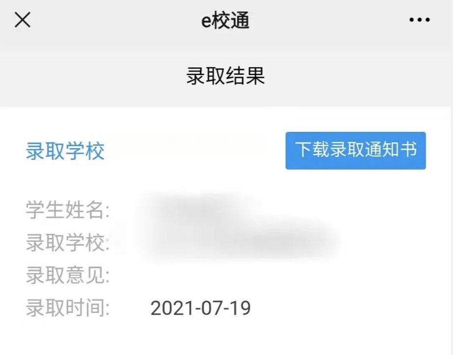 获取录取结果后,家长可点击【下载录取通知书】,根据提示下载录取通知书,如图所示: