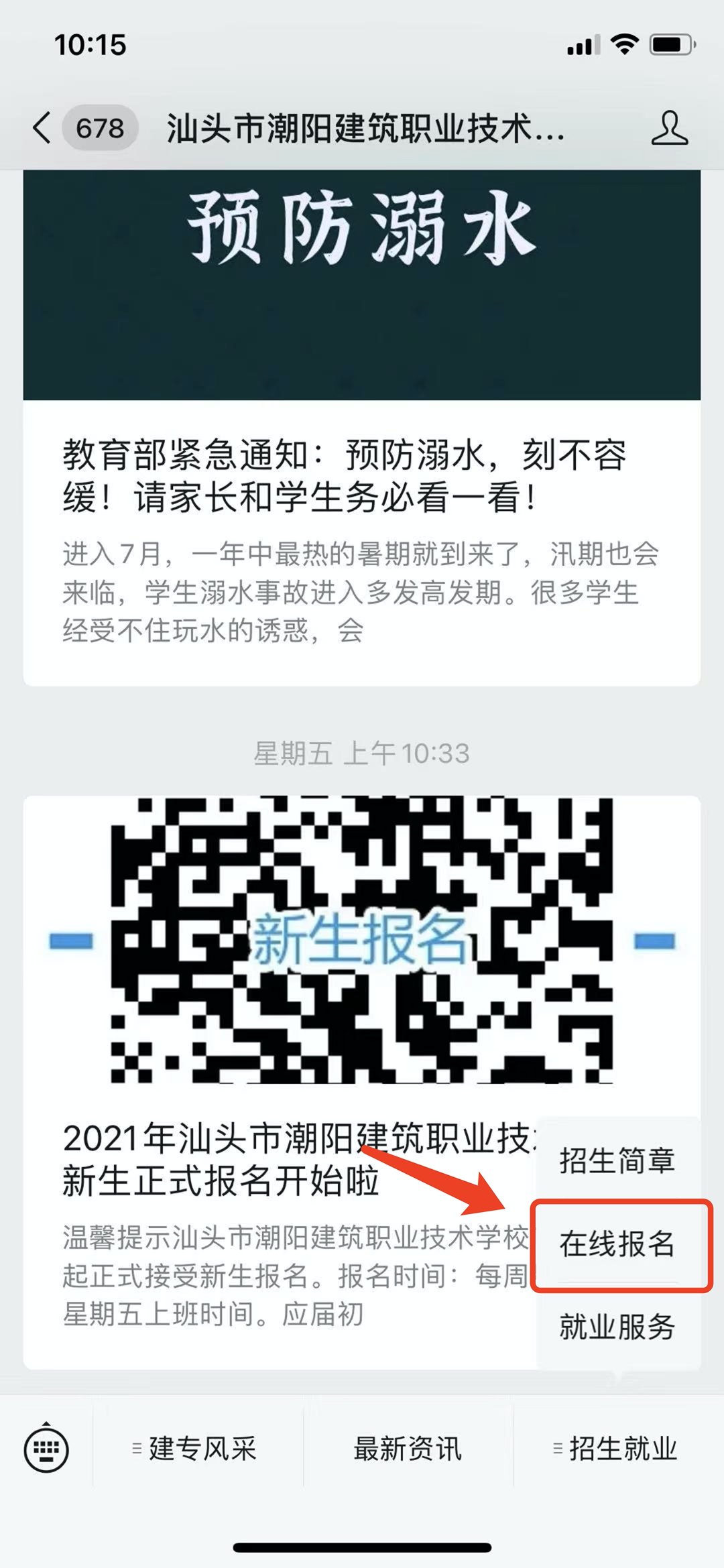 方式二:微信搜索 stscyjzzyjsxx 官方微信号,点击右下角菜单栏,选择在线报名。