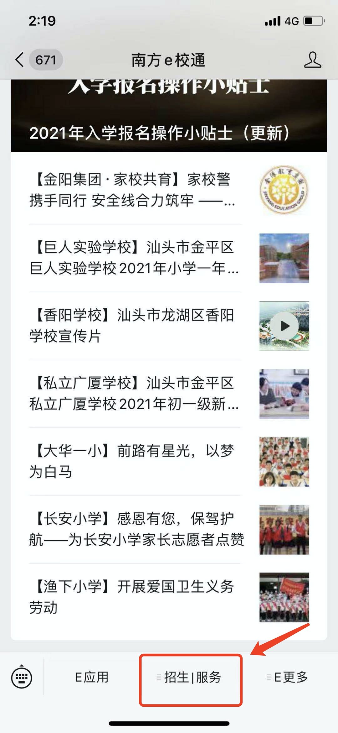 进入“南方e校通”→“龙湖区中小学招生入学服务平台”。