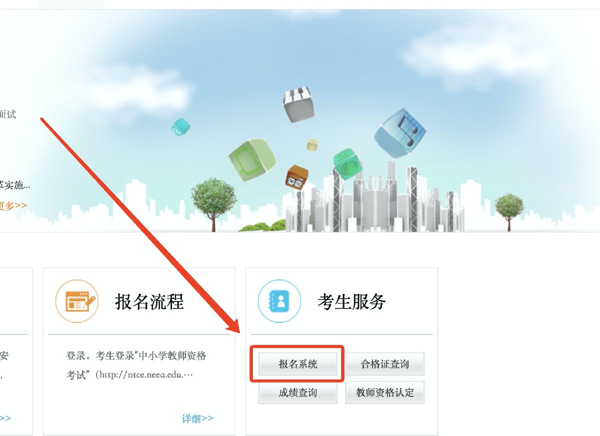 进入网站后点击“报名系统”选择对应的考试城市“点击登陆”根据系统的提示操作即可。