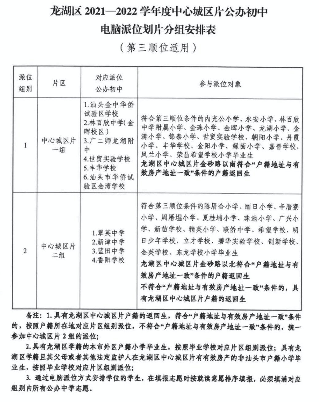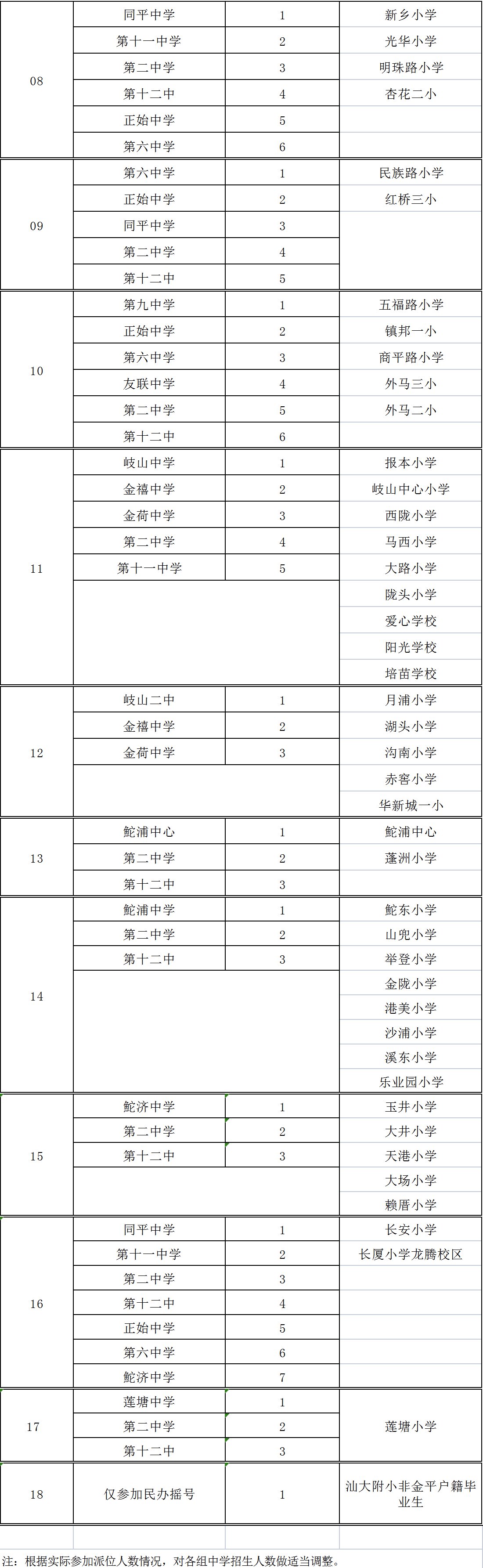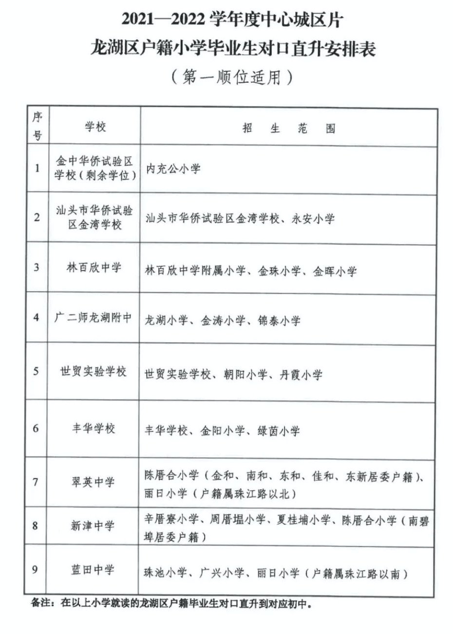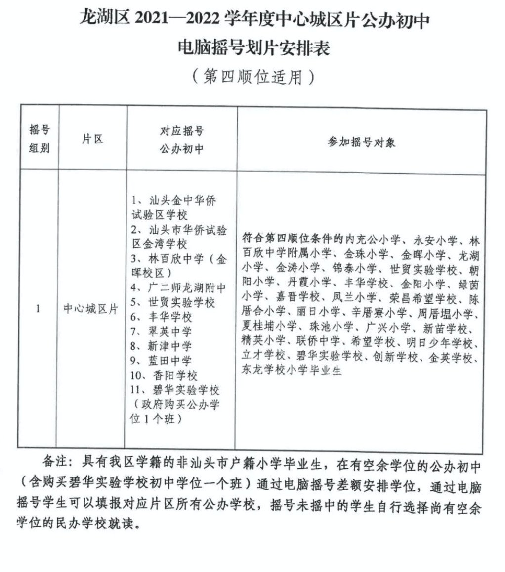 各镇(街道)所属小学毕业生(包括澄海区户籍在异地借读需回澄海区升学的毕业生)必须填报属地所在初中学校。