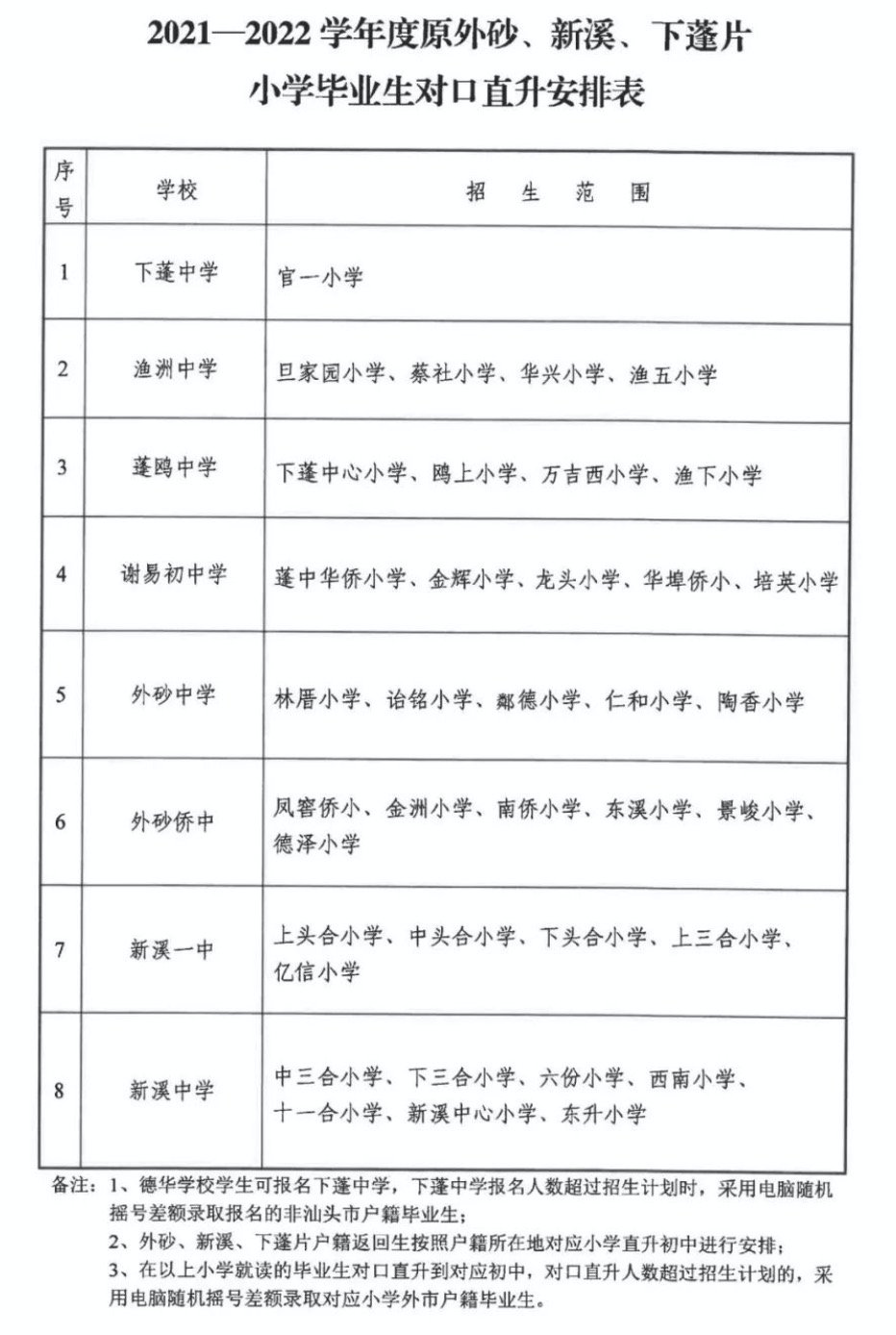 2021汕头市各区县小升初学校分配(2021汕头市小升初各学校分数线)