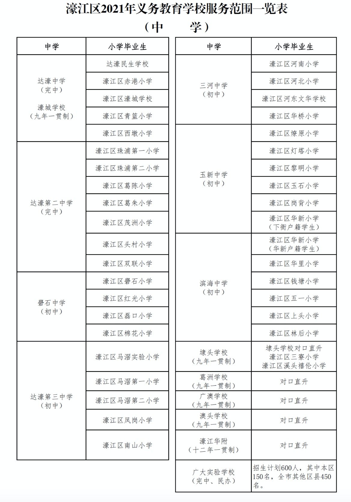 董坑、梅洲、仙门、塘陇、海岱、埭头、上岱美、下岱美、弓兜、口厝、外蚁村户籍的小学毕业生填报茂南中学就读。其他镇小学毕业生直接填报属地中学。