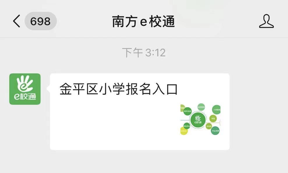 网上报名入口:“南方e校通”微信公众号➤“金平区中小学招生入学服务平台”