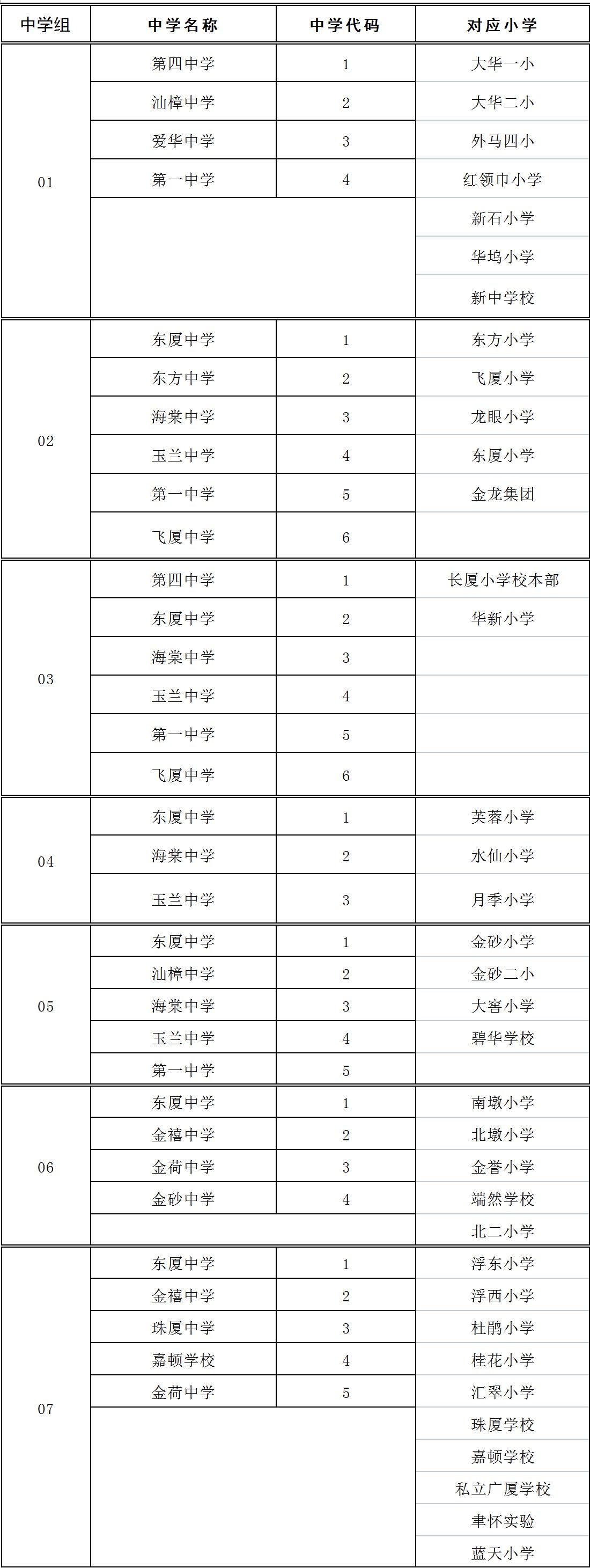 2021年小学升初中电脑派位分组表