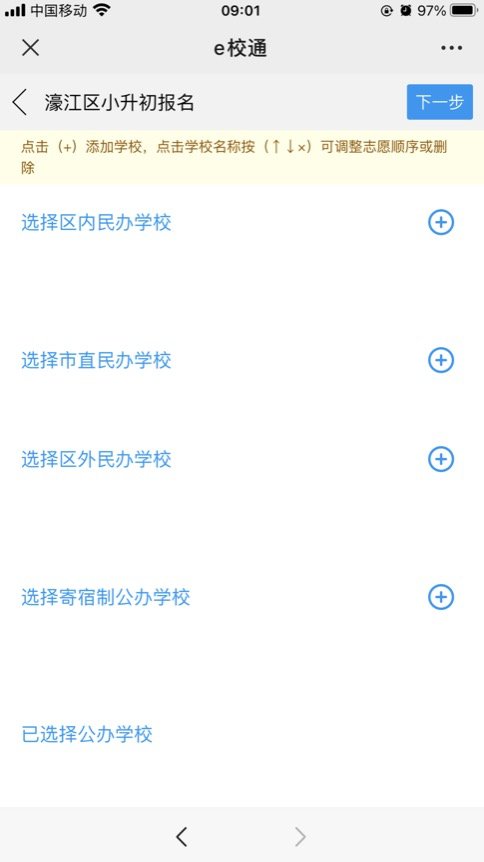 注意:如需更换已选择的学校,点击对应学校右边的【x】,再重新添加学校。