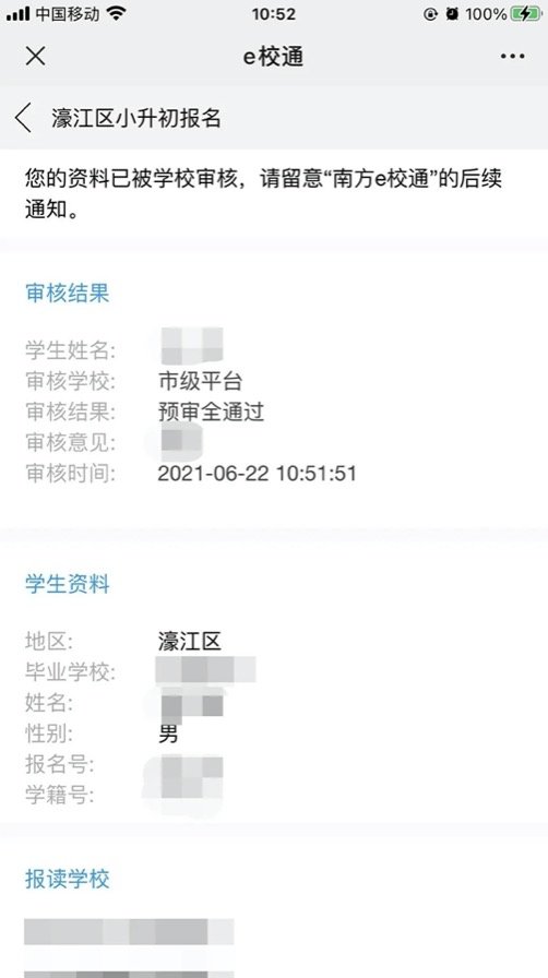 1. 学校审核后,审核结果将通过“南方e校通”推送给您,收到通知后,点击“查看详情”,如图所示: