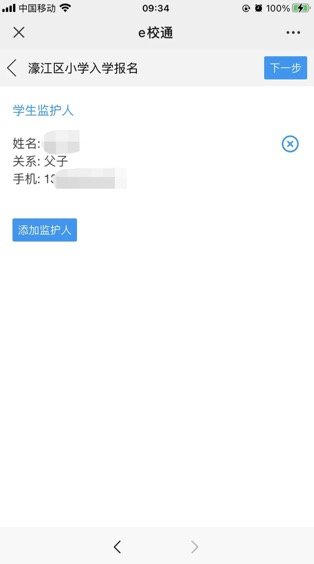 4、“学生监护人”资料中点击“添加监护人”,根据要求填写学生监护人信息,如图所示: