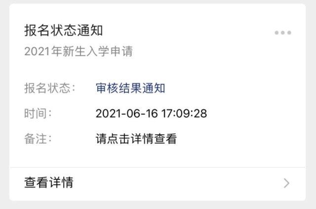 录取结束后,录取结果将通过“南方e校通”推送给您,收到通知后,点击“查看详情”,如图所示:
