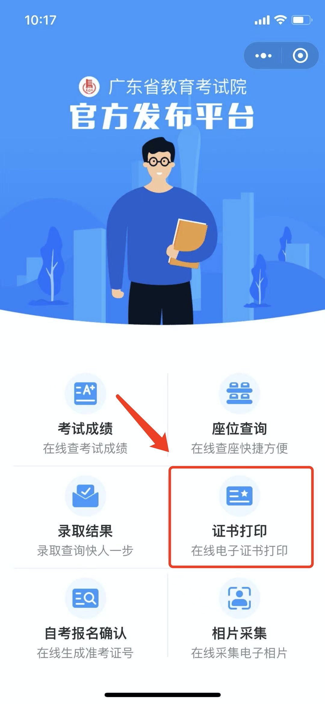 7月3日9:00起,考生可以通过省教育考试院官微小程序自行下载并打印成绩证书。具体操作为:在“广东省教育考试院”小程序中点击进入“证书打印”,选择考生对应的证书类别,填写考生信息登录后,即可下载成绩证书并自行打印。