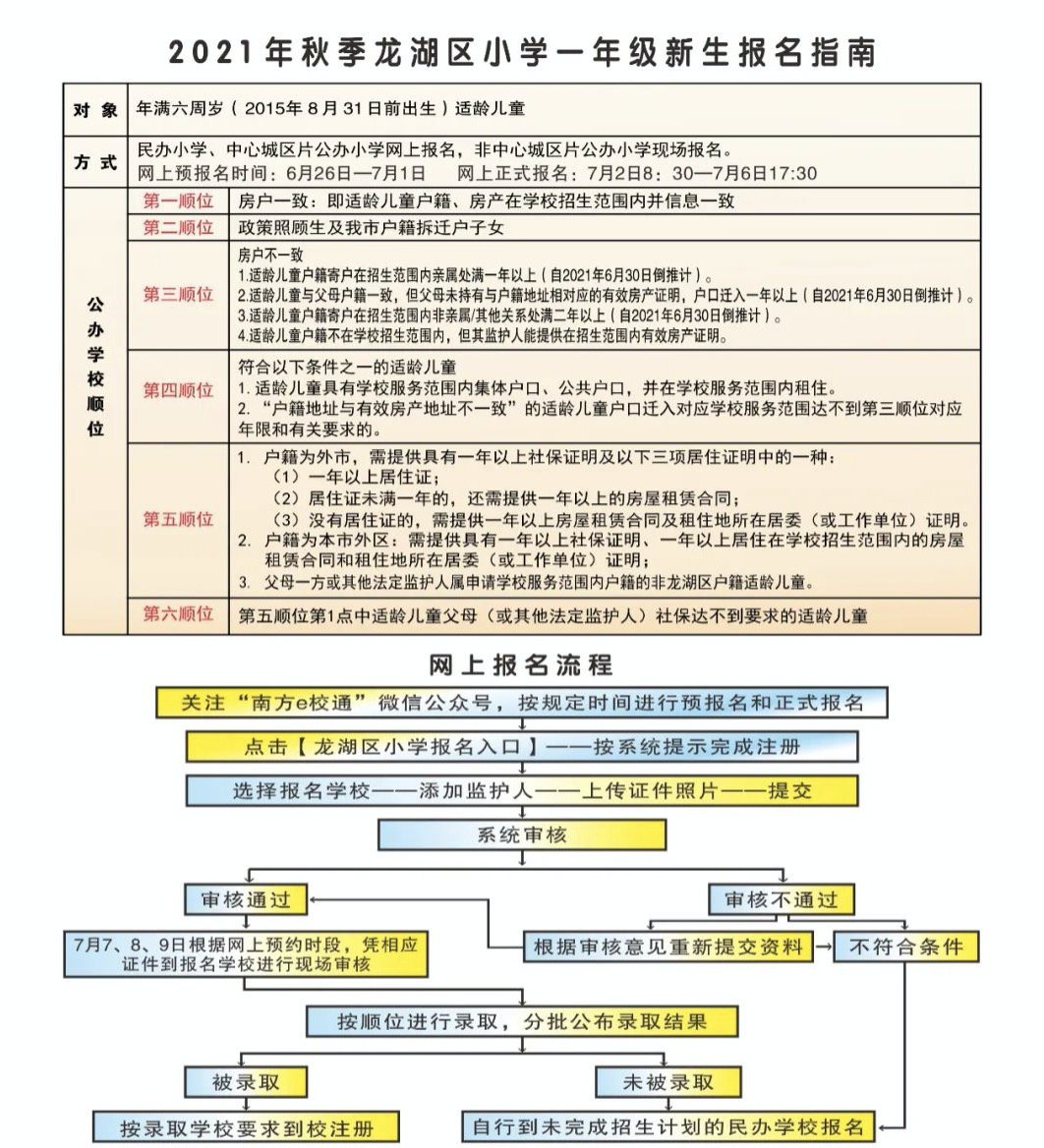 2021汕头龙湖区小学新生报名流程指引 汕头龙湖区小学报名时间