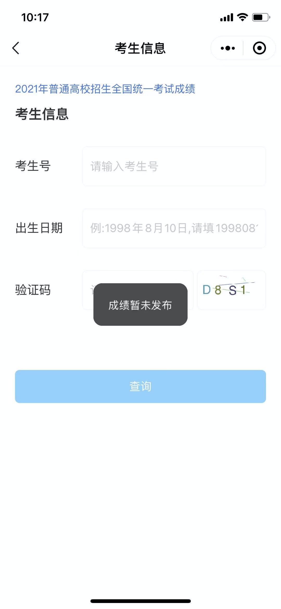 2021广东省普通高考成绩查询
