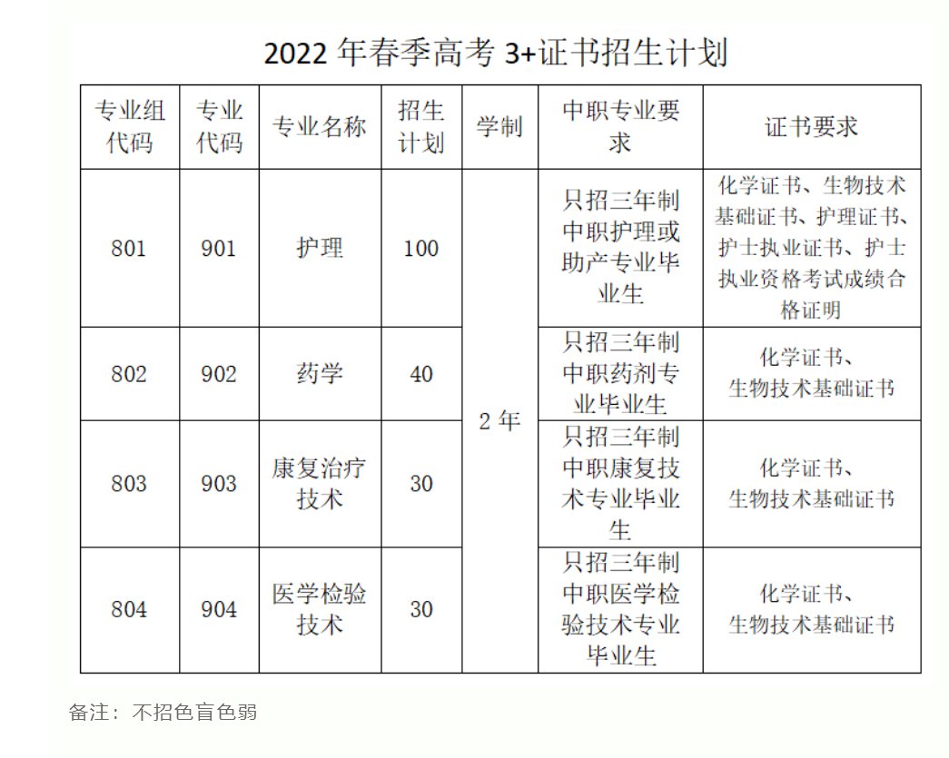 肇庆医学高等专科学校2022年春季高考3+证书招生简章(面向中职毕业生)